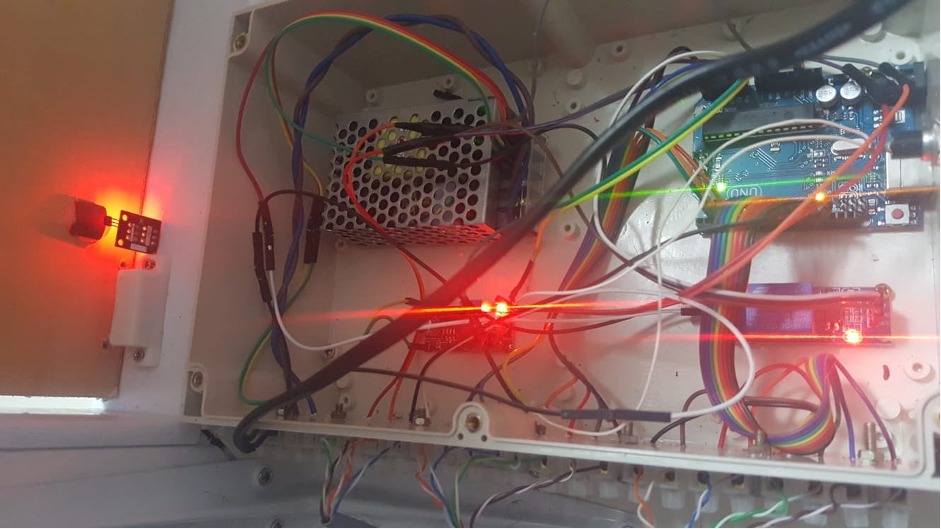 When the entered password equals with the password stored in the memory, the one-way relay is triggered so the door is opened.